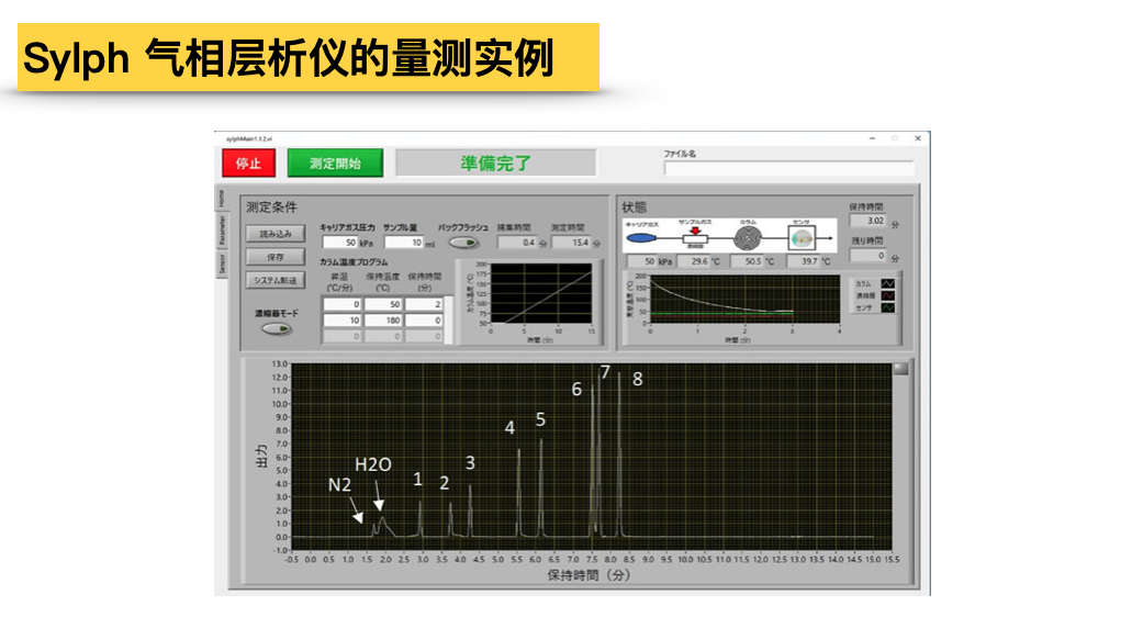 Sylph采用的基本原理是透過幫浦直接吸入樣氣,并透過內(nèi)建的小型濃縮器進(jìn)行前置作業(yè)。載氣由填充吸氫合金的氫氣罐提供,混合氣體由濃縮器中的高速加熱器注入層析柱內(nèi)。球形SAW感測(cè)器根據(jù)不同的保留時(shí)間來檢測(cè)柱分離的各種氣體成分。